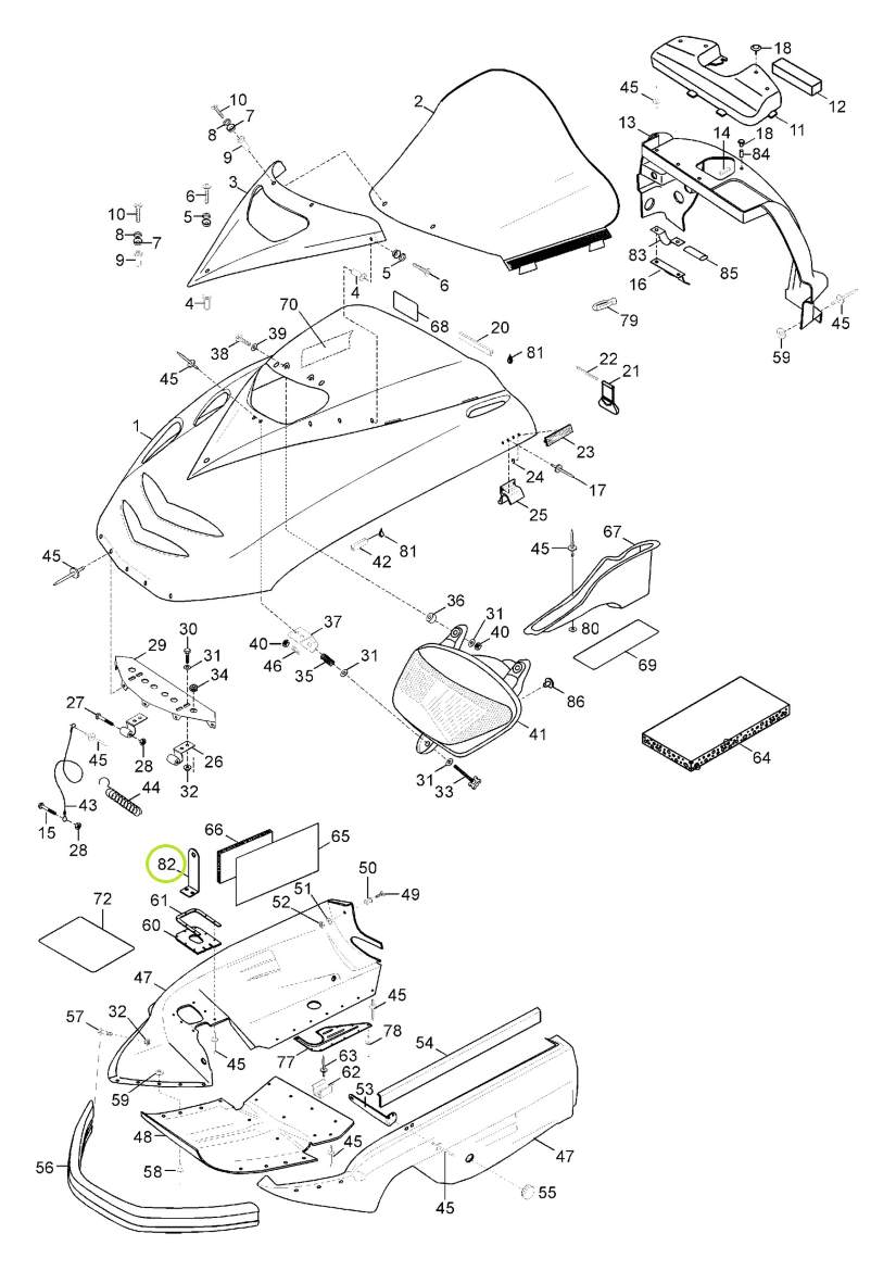 Främre fäste Lynx, nr 82 på sprängskissen.